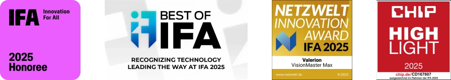 VisionMaster Max 在 IFA 2025 首次以最终形态亮相,荣获多项权威大奖。此次发布引发全球媒体关注,进一步巩固了 Valerion 在视觉技术领域的领先地位。